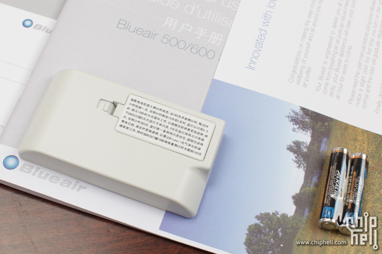 小盒子内的附件:说明书、保修卡、外置滤网寿命计数器、电池