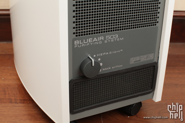 Blueair 503的右侧,机械版的机器控制旋钮在机器的右侧,4档风量选择。上面是右侧出风口哦!
