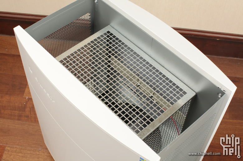 取出3个滤网,可以看到主机内部的结构,首先是一个离子室, 下面是风机