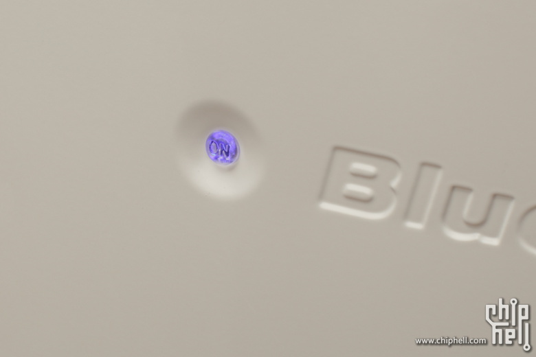 Blueair 的 Logo 以及电源指示灯,机器上唯一的指示灯,亮蓝光的!光污染啊~~~