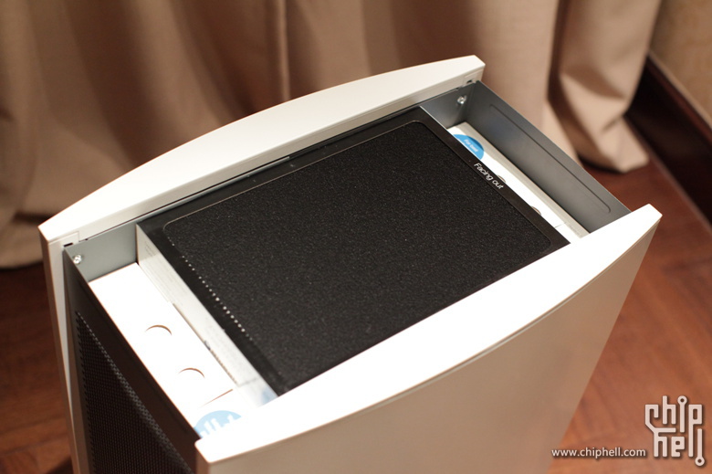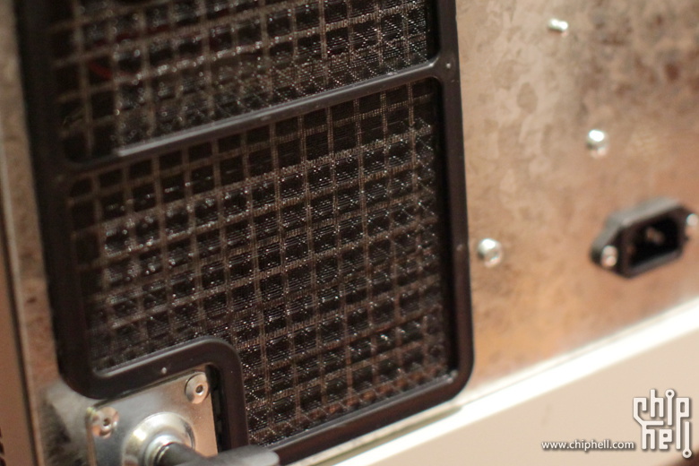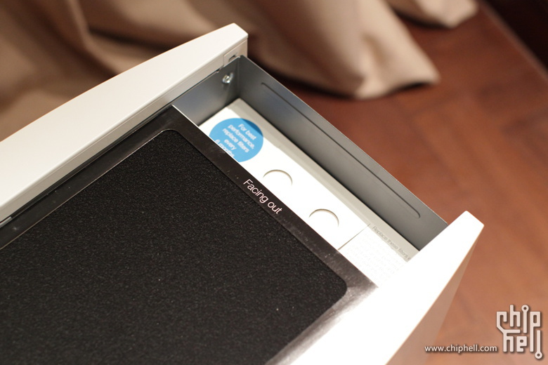 机器底部一侧进风口及初过滤网,底部左右2侧各一个,电源接口在机器底部哦,安装不方便,但是这样的设计也有好处,线缆随便从主机的那边底下出线都可以。
