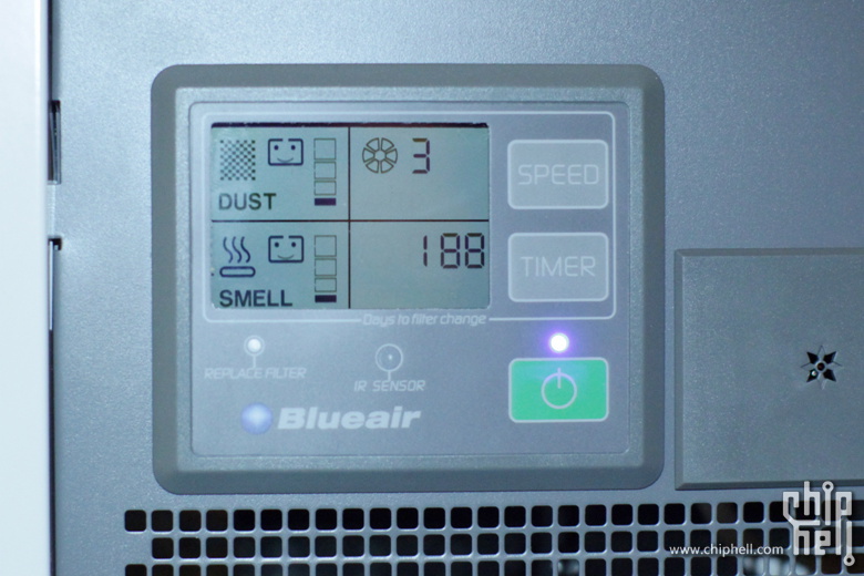 BLUEAIR 5系的机器是3个方向进风,3个方向出风,整个房间空气过滤相当的快速,虽然手贴在出风口上感觉风量并不是非常的大,但是人在机器的两侧以及正前面1米多甚至2米远处都能感受到有空气的流动,非常的给力。
