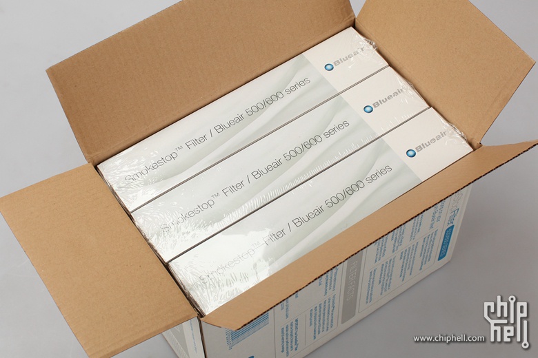 打开箱子,可以看到3盒塑封的滤网整齐排列在外箱内