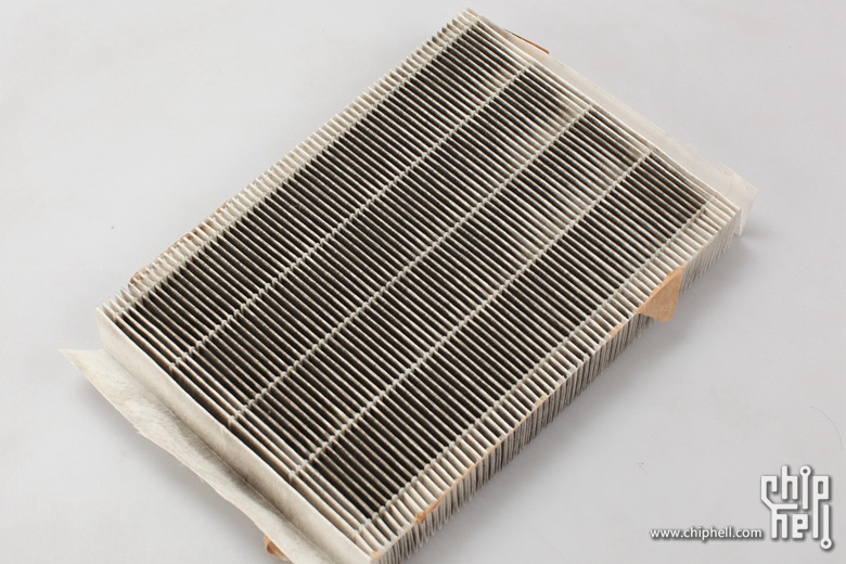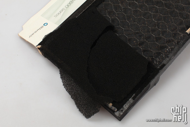 背面撕掉那层类似硬质海绵的东西以后,我们透过一层滤网看看里面。