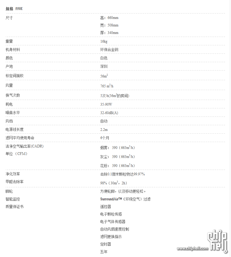 550E空气净化器,同类产品 顶级净化效能(CADR值390,空气净化效能国际权威检测认证部门——美国家电制造商协会测定)。美国食品和药品管理