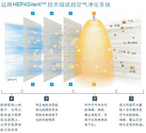 由美国家电制造商协会(AHAM)测定,美国肺脏协会与环保署认可,CADR值可直接反映空气净化器性能的高低,CADR值越高反映净化效能越快。(详情 参考:http://www.aham.org)因此,消费者在购买产品时,需认准该值。而Blueair空气净化器的CADR值已达到行业 高标准,是 同行业空气净化器的数倍,同时Blueair也是首批获得“能源之星”的空气净化器。其采用独有的专利HEPASilent技术,结合了纯HEPA机械过 滤与静电吸附的优点,其显著特点是解决了HEPA滤网的过滤效率和空气阻力之间的矛盾,(也就是高过滤效率与大循环风量的矛盾), 过滤效率对直径小至0.1微米的微粒去除效率可高达99.97%,风量高达830立方米/小时,这样可以高效快速净化室内空气,且低噪音低能耗,无臭氧, 真正做到各项性能平衡,几乎满足人们对室内空气净化的所有要求。