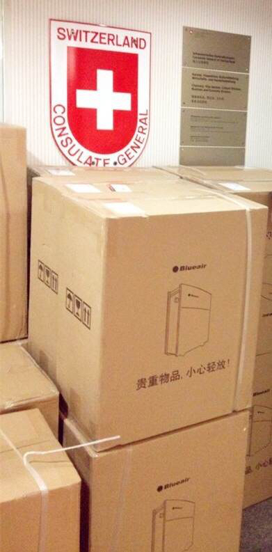中国区上海瑞士使馆使用的是BLUEAIR空气净化器,而不是使用瑞士本土的IQAIR品牌空气净化器