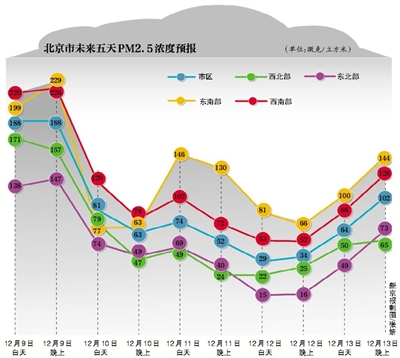 昨 天白天,北京的天气总体来说还不错,但空气质量已悄然下降。昨天19时,空气质量实时平台显示,大部分地区的空气质量已经跌至了三级轻度污染水平,而南部 和东部的丰台、房山、通州等站点,空气质量已经率先降至五级重度污染水平,PM2.5浓度达到每立方米200微克左右。