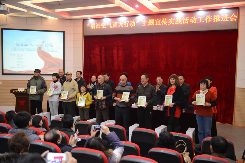 会上,观看了海淀区家庭生活微行动成果展,6家单位、团体介绍了经验做法,向“变废炫宝网络秀”和“扮靓我家”活动获奖者代表颁发了奖品、证书,向市民代 表赠送了《“清洁空气蓝天行动”市民宣传手册》,对即将展开的“微承诺微行动微志愿暨绿色生活好市民评选活动”进行了部署。首都文明办主任滕盛萍及市环保 局、市市政市容委、市交通委、市商务委、市园林绿化局、团市委、市妇联、市公安交通管理局等有关单位领导、风云单车、绿主厨等志愿者代表、社区居民代表等 200余人出席了会议。