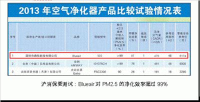 沪消保委测试:Blueair空气净化器对PM2.5的净化效率超过99%