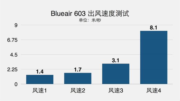 然后是出风量的测试。先测试风速,1-3都比较均匀的递增,但风速4确成倍数的增长,而且噪音特别大,四档几乎无法使用。