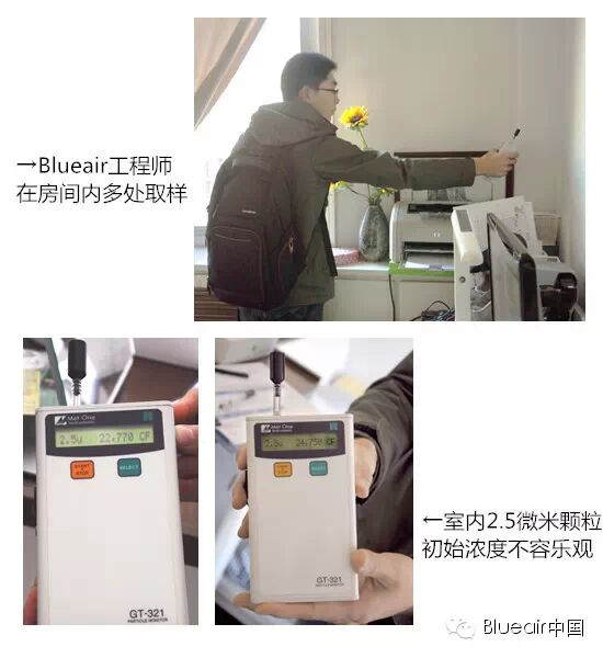 工程师继续在房间内检测室内空气颗粒物浓度,“用数据说话”。