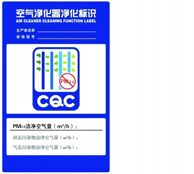 经过对空气净化器的洁净空气量、PM2.5洁净空气量等进行认证后,合格的空气净化产品会施加统一标识。