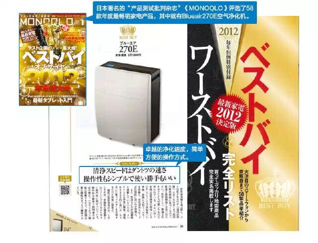 除了日本共同社对Blueair的报道,日本知名评测杂志《Monoqlo》也在年度盘点中将Blueair的产品推荐为 佳购买选择,跻身BestBuy的Top行列,足以说明Blueair作为外来品牌在日本本土的巨大影响力。