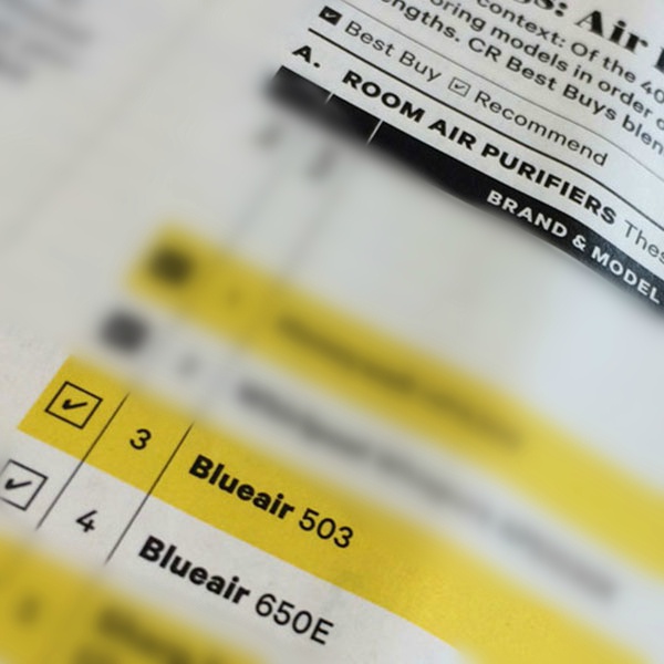 年11月 ,权威Comsumer Report机构发布了空气净化器排行,Blueair成为唯一一个在前十名内占有3席的品牌,其中Blueair