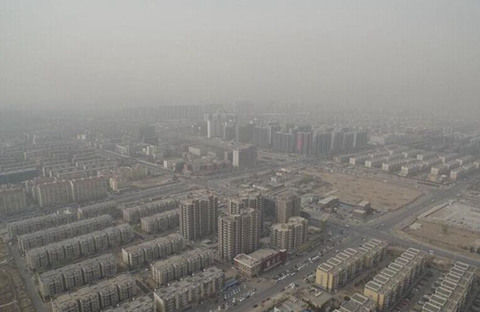 29日,北京出现浮尘,图为昌平区500米高空拍摄的画面。(来源:光明网)