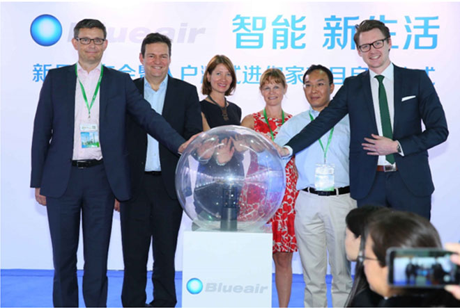 随着Blueair水晶发光球的一点点变蓝,彭睿先生协同中国董事总经理李开玖先生、全球首席营销官Annika,全球销售总监Jonas等人一起揭开了