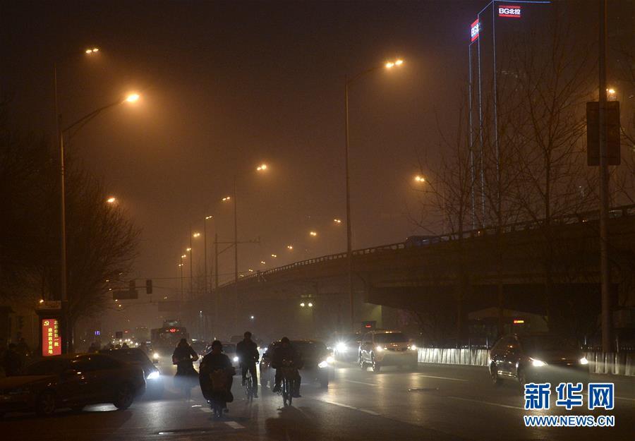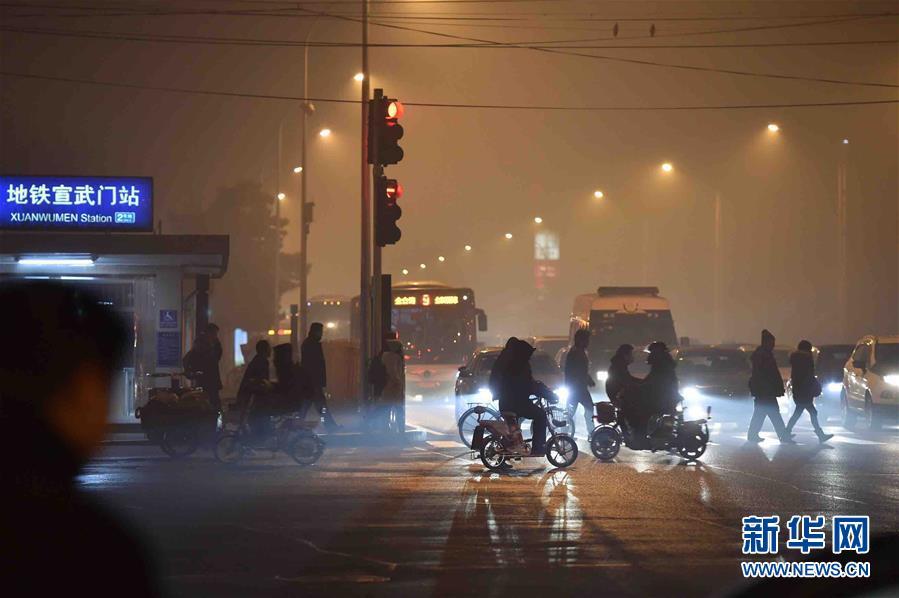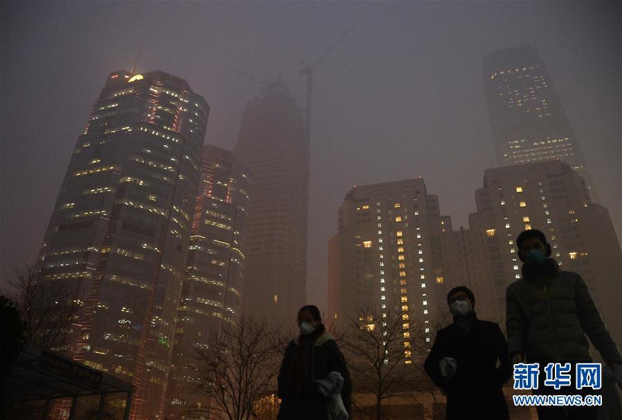 据北京市环保监测中心介绍,12月22日北京空气质量可达到此轮污染过程的峰值,PM2.5峰值浓度或将超过500微克/立方米。截至目前,北京、天津、河北三地气象台均已发布霾红色预警。新华社记者武巍 摄
