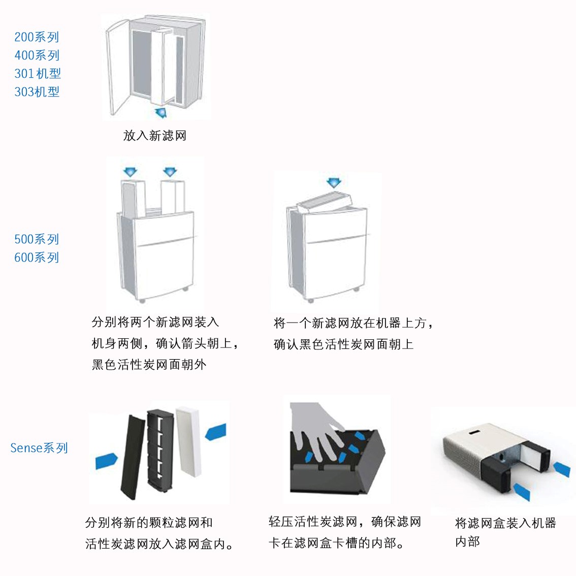 Pro系列的纯活性炭滤网更换方式↓