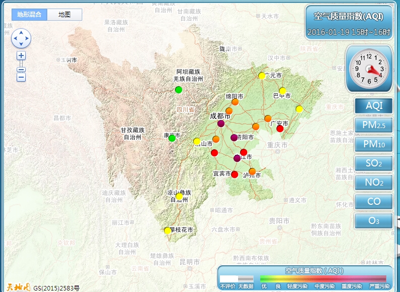 四川在线消息:1月19日,记者从四川省环境监测总站获悉,截止发稿,21个市(州)中,13个城市出现不同程度的空气污染。其中,成都、资阳、自贡为重度污染;广安、乐山、宜宾、内江为中度污染;绵阳、德阳、南充、遂宁、泸州、眉山为轻度污染。