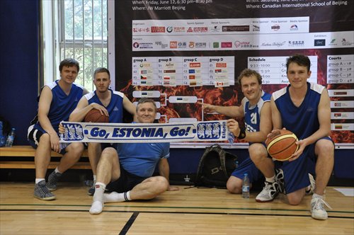 The Estonian Embassy team joins Toomas Lukk (third from left), the Estonian Ambassador to China and the team captain, on the basketball court. Photo: The Global Times