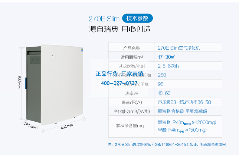 270e有空气质量检测的相关模块,可以依据空气检测结果,自动调整工作功率,是比较智能的一款,滤网及其它方面无区别